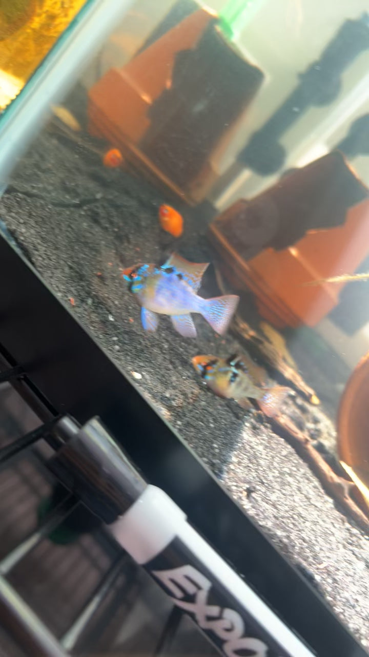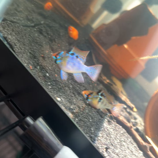 German blue Rams thrive in warm, soft, slightly acidic water and prefer a well-planted aquarium with hiding spots and gentle water flow. They are generally peaceful and can be kept with other non-aggressive tank mates. With proper care, they display bright coloration, social behaviors, and even pair bonding during breeding.