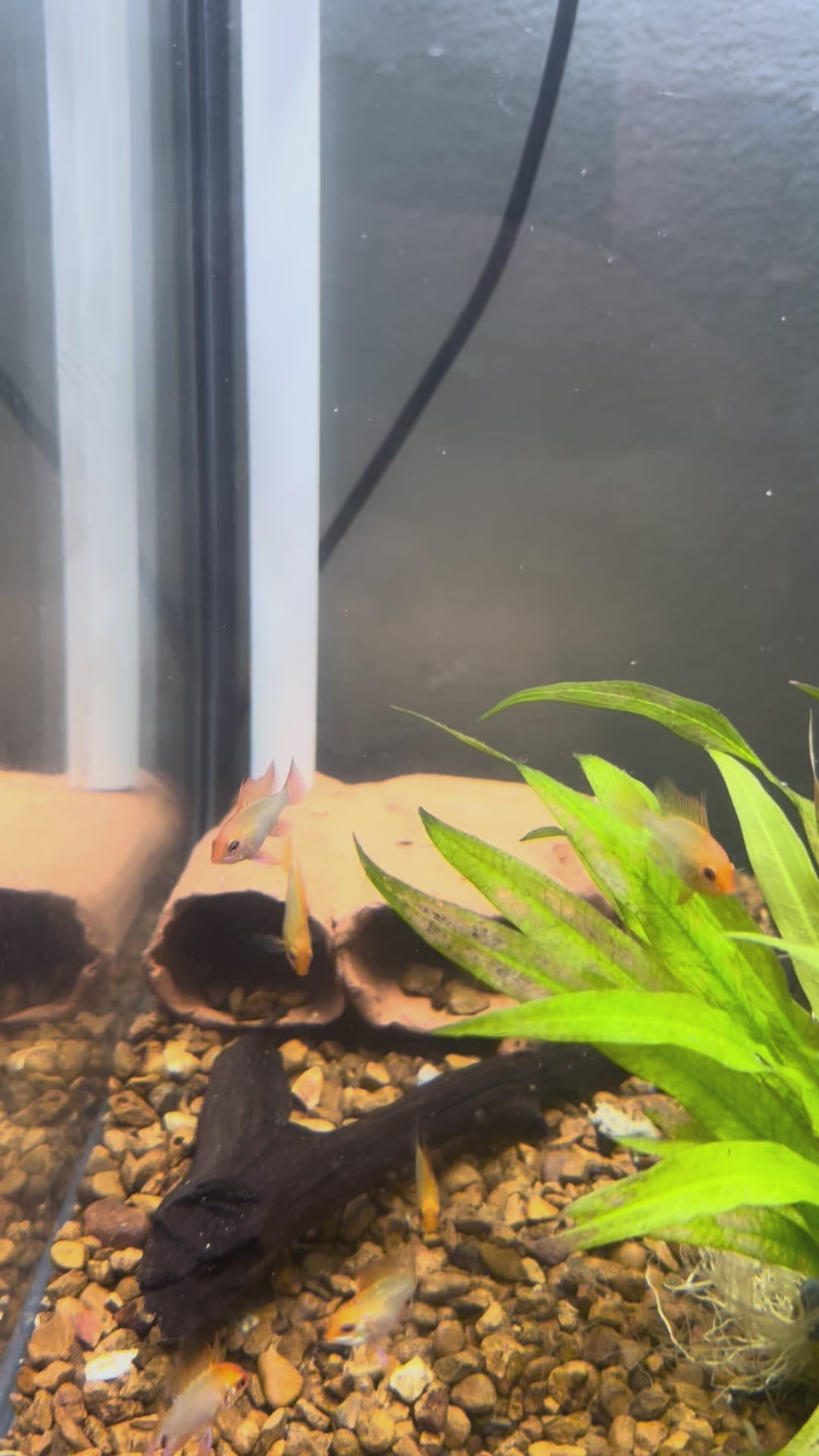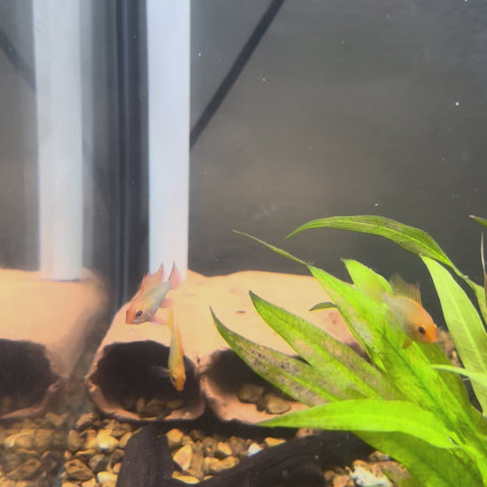 Gold Rams thrive in warm, soft, slightly acidic water and prefer a well-planted aquarium with hiding spots and gentle water flow. They are generally peaceful and can be kept with other non-aggressive tank mates. With proper care, they display bright coloration, social behaviors, and even pair bonding during breeding.
